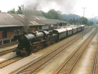 "Mit Volldampf nach Budweis" - unter diesem Thema stand die Veranstaltung der ÖGEG mit eigenen Lokomotiven am 29. Mai 1997: Internationaler Dampfschnellzug mit der 130 km/h schnellen 01 533 von Salzburg über Linz, dort Zusammentreffen mit einem von Passau kommenden, von der 52 8186 geführten Flügelzug. Die beiden Züge fuhren vereinigt mit beiden Dampflokomotiven weiter von Linz über Summerau nach Budweis und zurück.