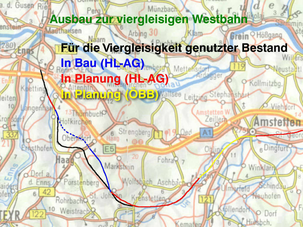 Die Westbahn - eine österreichische und europäische Magistrale - ist Teil dieses Netzes. Da sie aber zu einem Großteil aus dem vorigen Jahrhundert stammt, ist sie bereits in einigen Abschnitten bis an ihre Kapazitätsgrenze ausgelastet und kann als West-Ost-Achse den steigenden Ansprüchen nicht mehr gerecht werden. Es sind auch hier zur Erhöhung ihrer Leistungsfähigkeit entsprechende Maßnahmen unabdingbar.